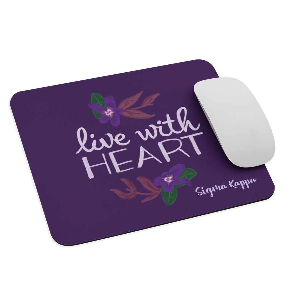 Sigma Kappa Live With Heart Mouse Pad shown with mouse