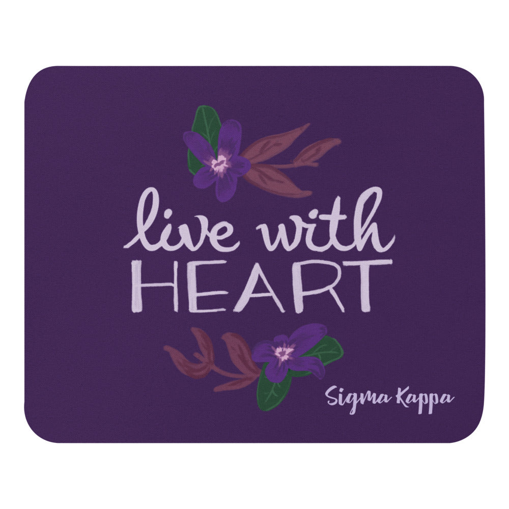 Sigma Kappa Live With Heart Mouse Pad in purple shown in full view