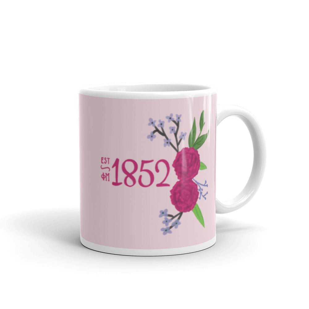 Phi Mu 1852 Mug in 11 oz size showing print on both sides