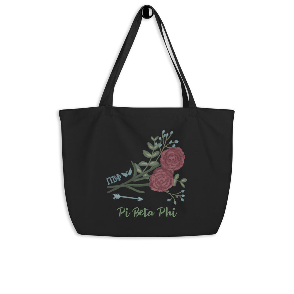 Pi Beta Phi Carnation and Arrow Large Organic Tote Bag in black