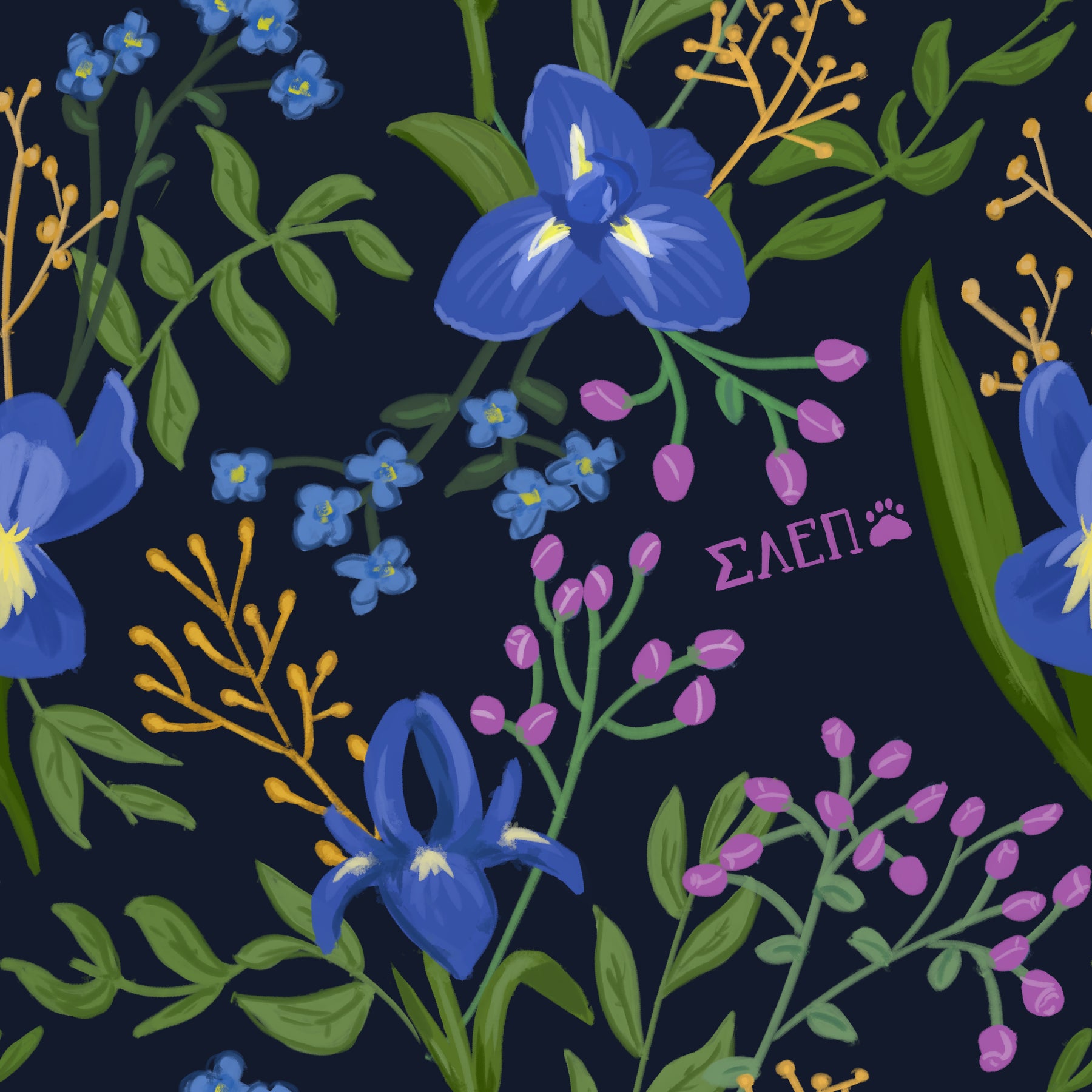 Sigma Alpha Epsilon Pi Floral Print in Navy Blue showing hand-drawn design