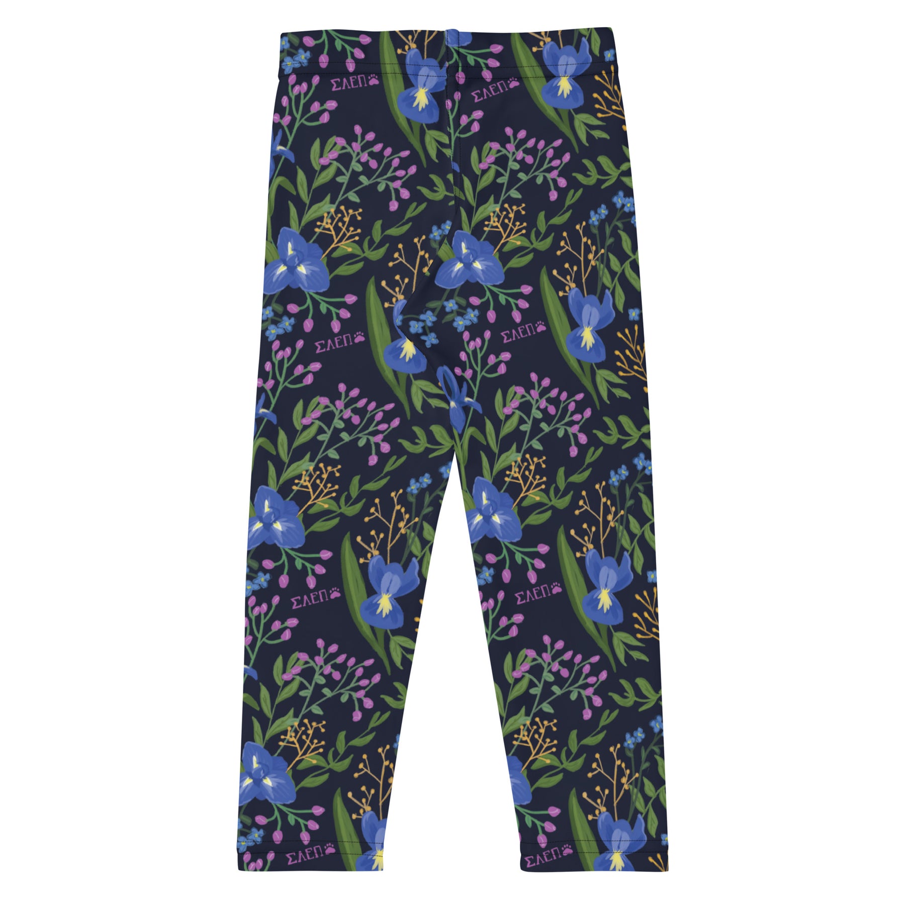 Your SAEPi Floral Print Kid's Leggings are the perfect gift for Mother's Day or any day. Designed with our hand-drawn blue iris floral print in Navy blue, your soft kid's leggings are versatile enough to be worn for any activity. Pair them up with our Matching SAEII Adult Leggings to create a perfectly adorable Sigma Alpha Epsilon Pi "Mommy and Me" ensemble.