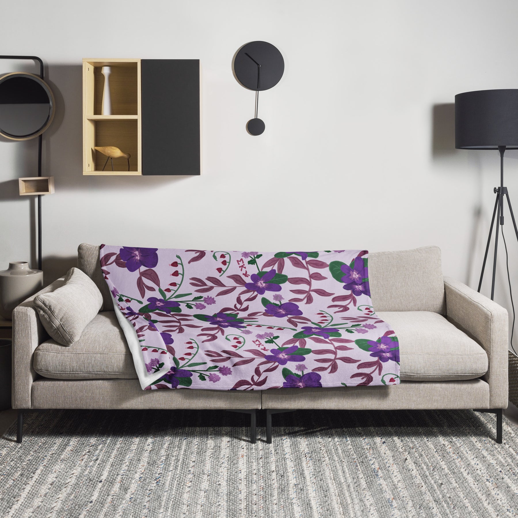 Sigma Kappa Floral Print Throw Blanket in lavender shown in 60" x 80" size shown on couch
